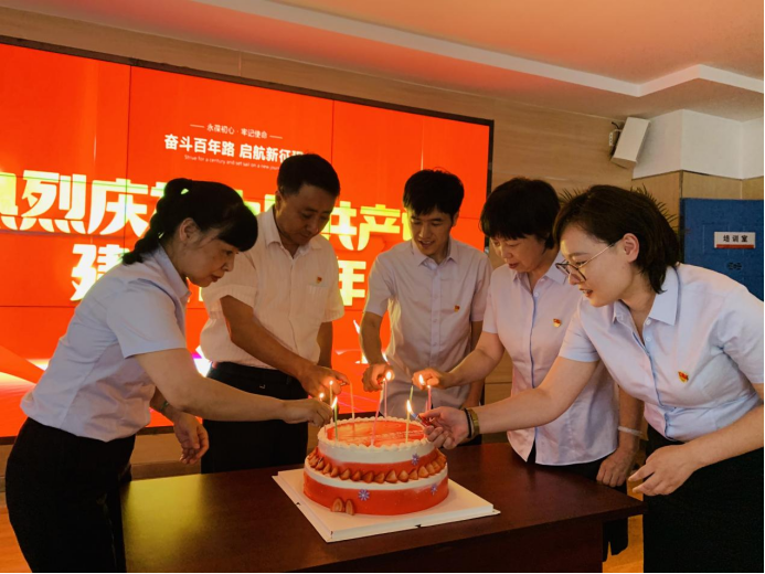 聯(lián)歡會(huì)上,全體黨員集體過政治生日,黨員代表上臺(tái)為中國(guó)共產(chǎn)黨點(diǎn)燃生日的燭光,大家齊聲祝福我們的黨永葆青春,生日快樂。